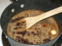 Mix the brown sugar, salt, cinnamon and hot water. Add the butter and vanilla extract. Bring to a boil, stirring constantly. Reduce heat and simmer uncovered for five minutes. Add apple chunks.