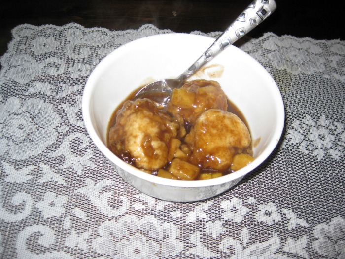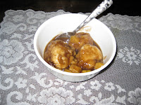 Drop balls into caramel sauce, put lid on and leave covered for 20 minutes. Serve warm.